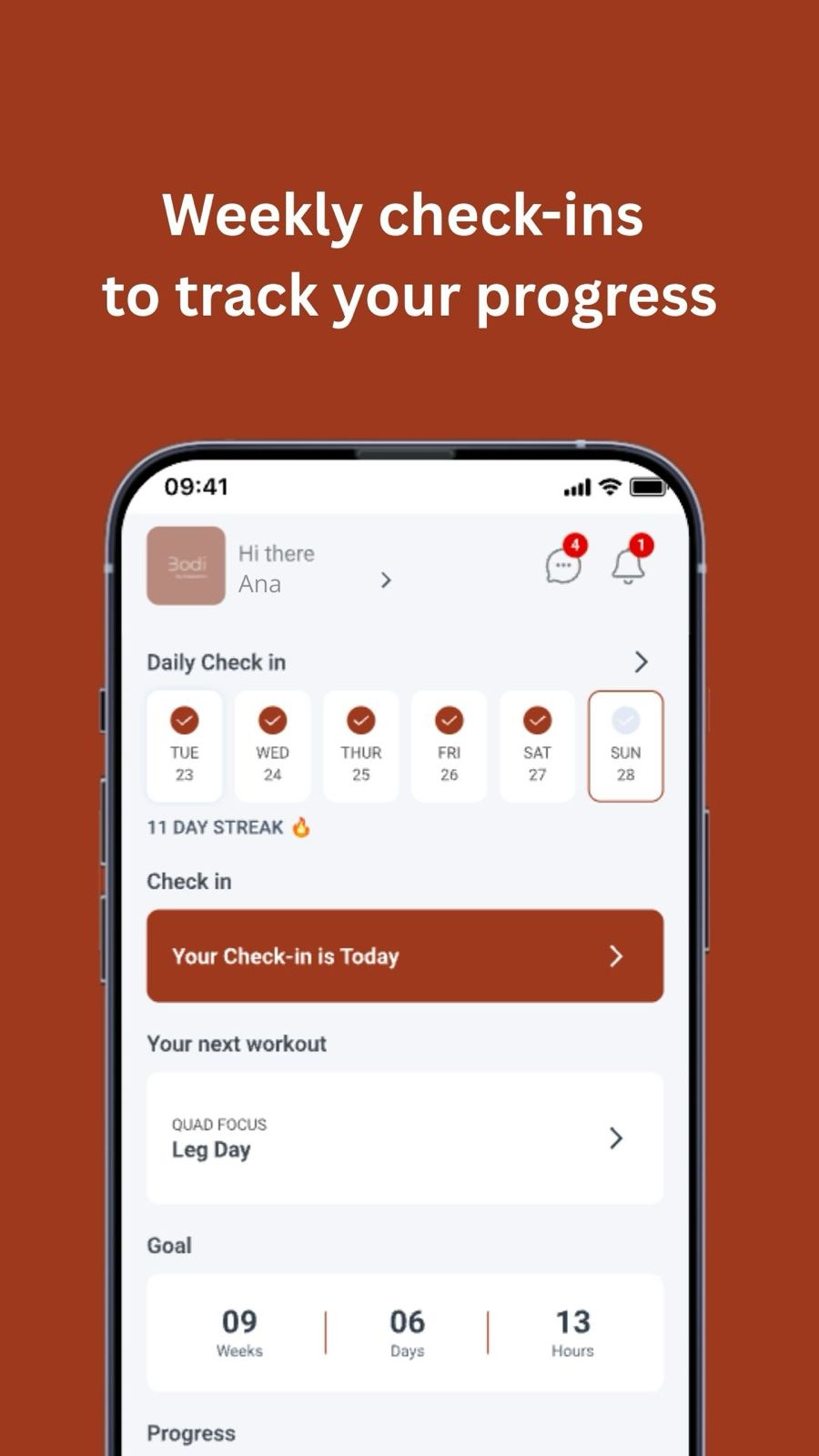 Once you're in, everything lives here. Your training program, meal plan, check-in forms, and progress- all in one place. No chasing emails or digging through messages. Just open the app and you'll know exactly what to do.